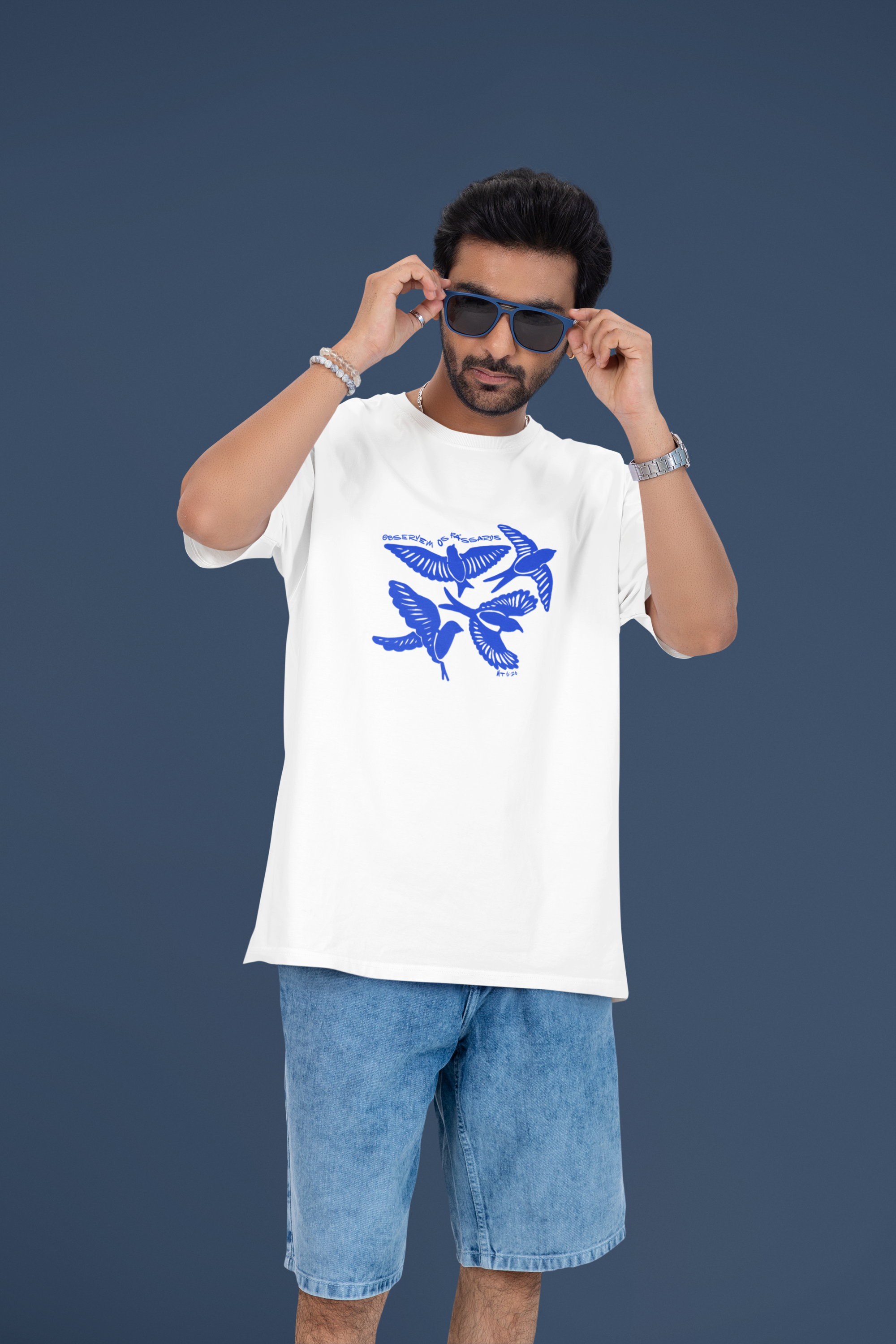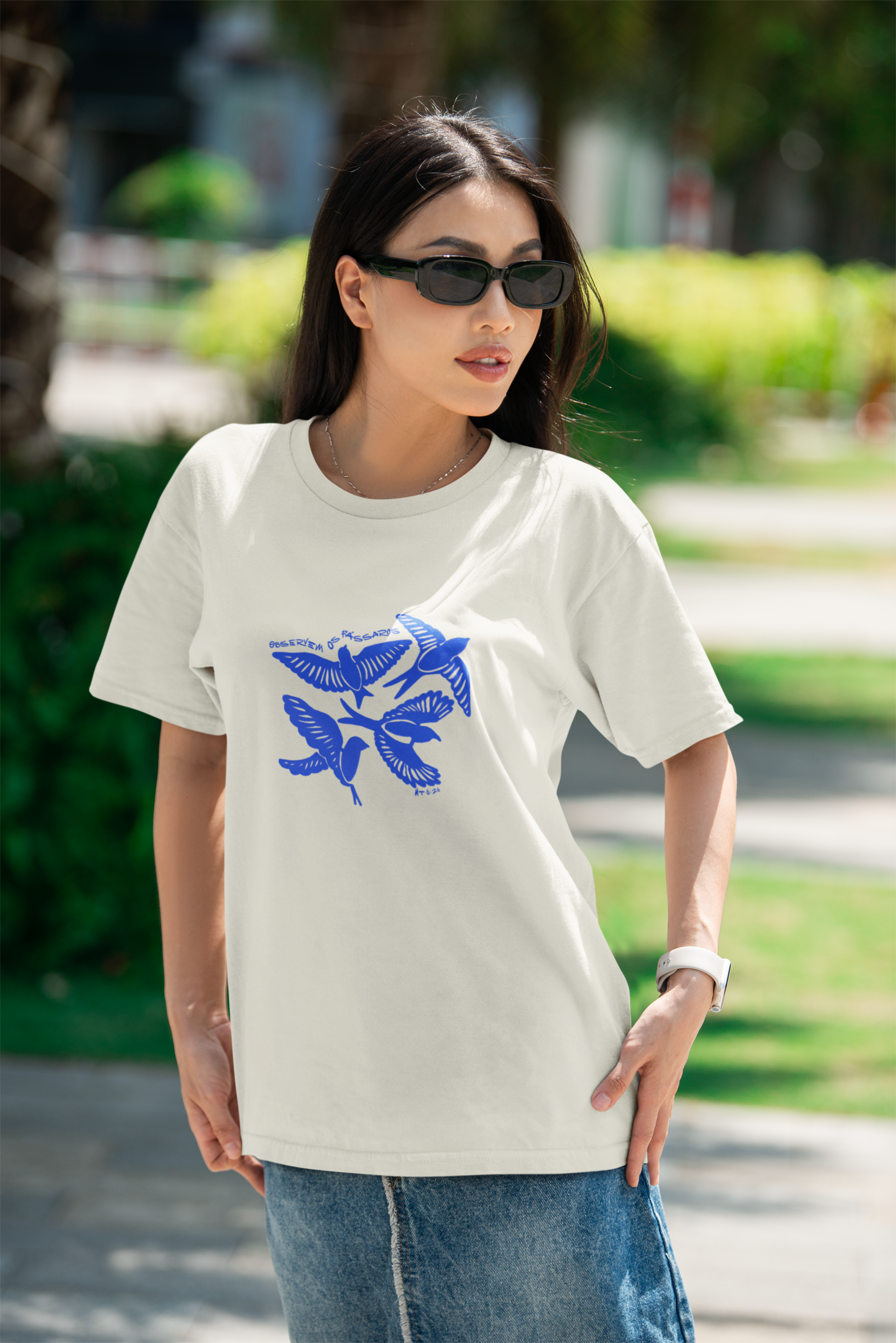 “Observem os Pássaros” traz uma ilustração delicada de quatro pássaros, acompanhada da mensagem inspiradora de Mateus 6:26: